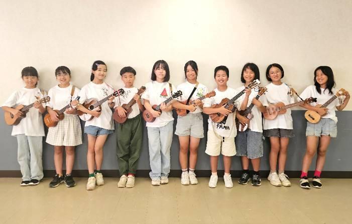 別々のクラスでレッスンを受けている小・中学生が集まってウクレレ演奏グループを結成!