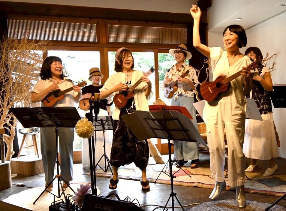 お料理教室のアトリエをレッスン場所とする、パワフルなウクレレグループ!